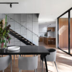 Through another transparent breezeway – whose floor is lined with river rocks, once again referencing the influence of water on the site – the home’s private areas are located in the eastern two-storey volume, which holds four suites.